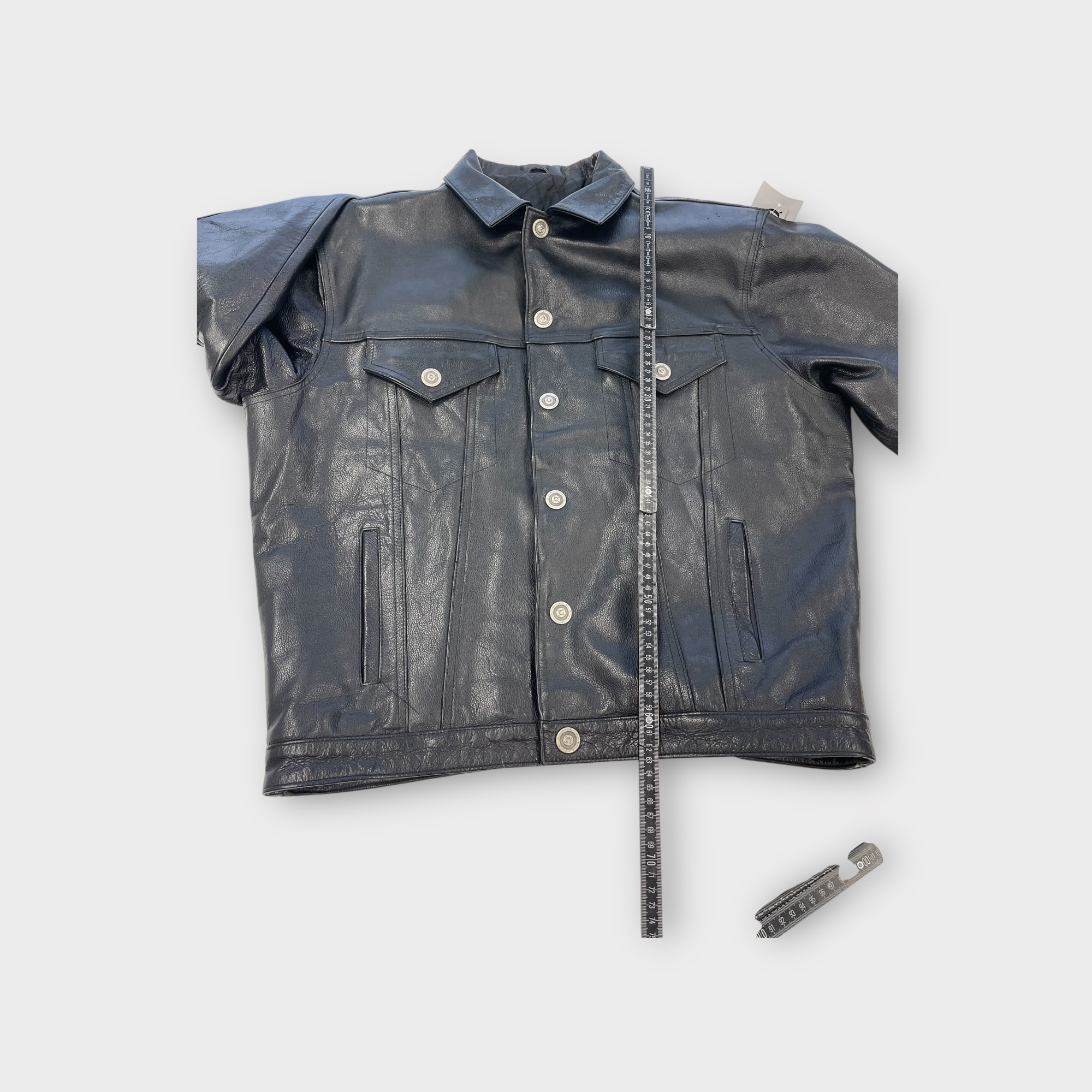 De jas sluit met drukknopen, let op een van de knopen aan de zijkant is stuk.